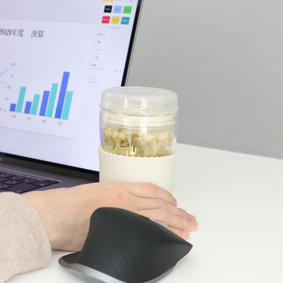 さらに、冷たいものを入れても「結露」しにくいので、デスクの上の書類やパソコンを濡らしてしまう心配もありません。