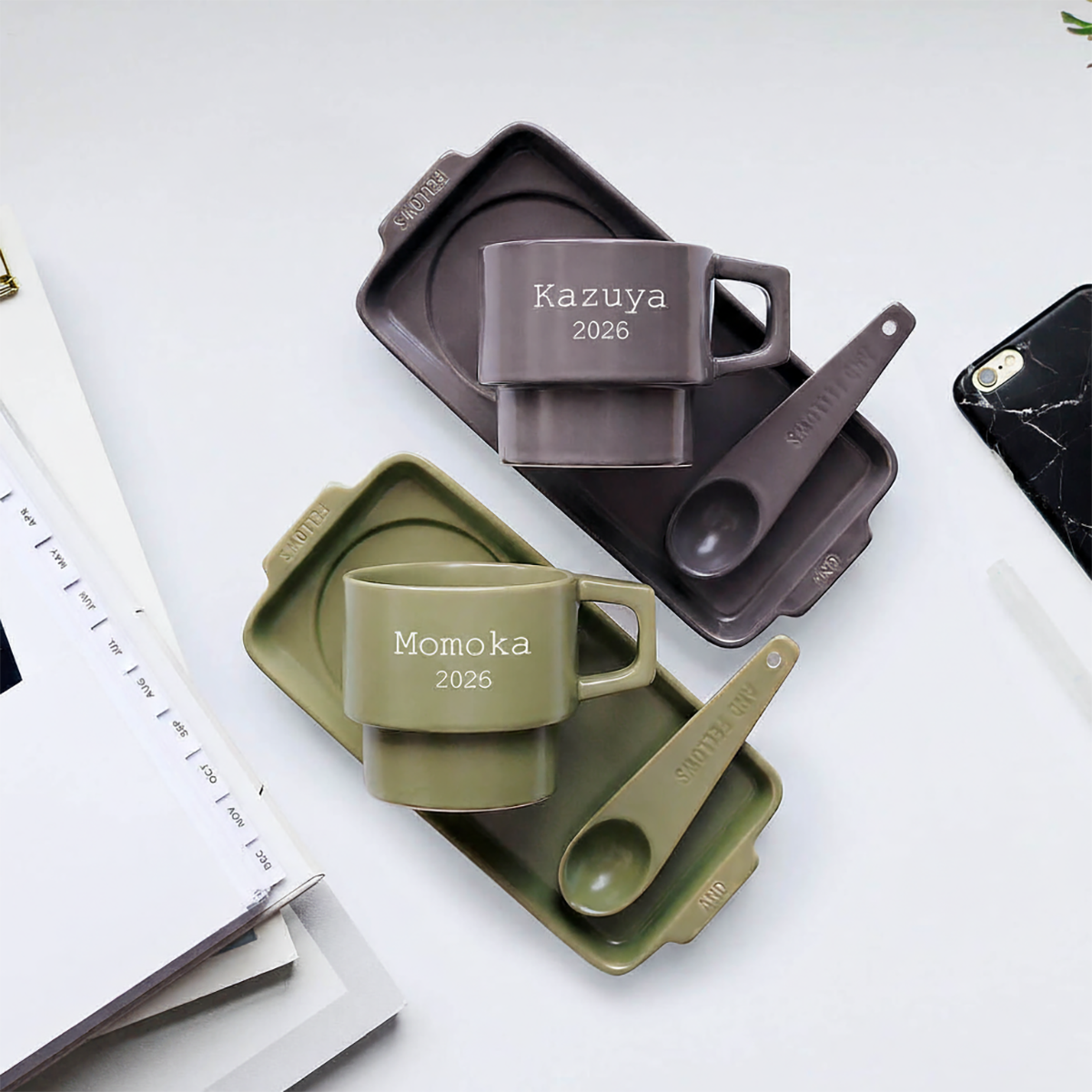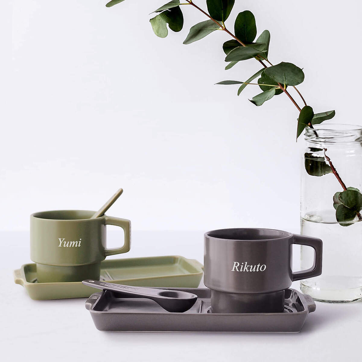 作为定制刻名的对装礼品,在各自的杯子上刻上名字或首字母缩写,这正是这份礼物的动人之处。
