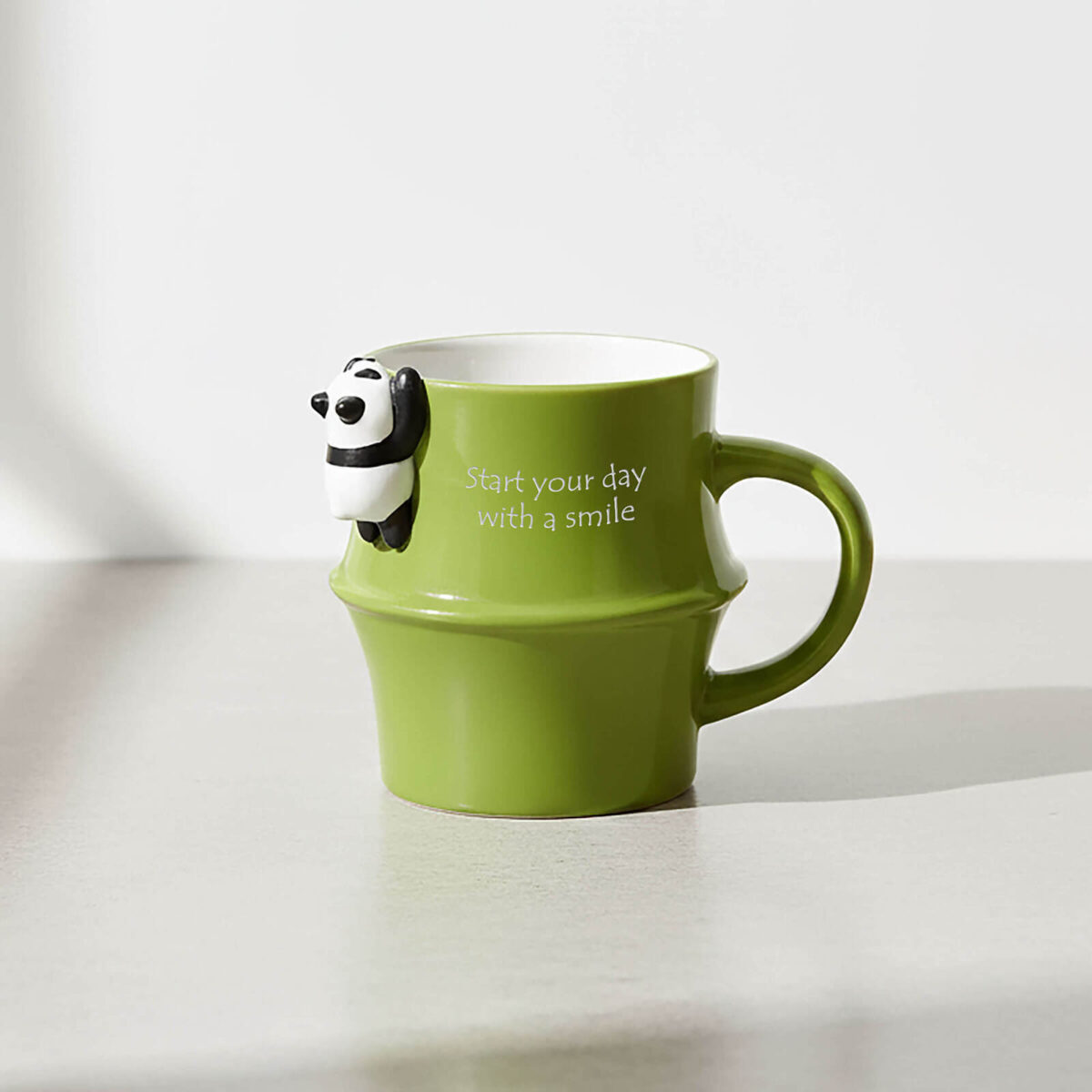 陶瓷烧制出的圆滚滚熊猫,正使出浑身解数扒着杯缘,或者悠哉地坐在把手上……