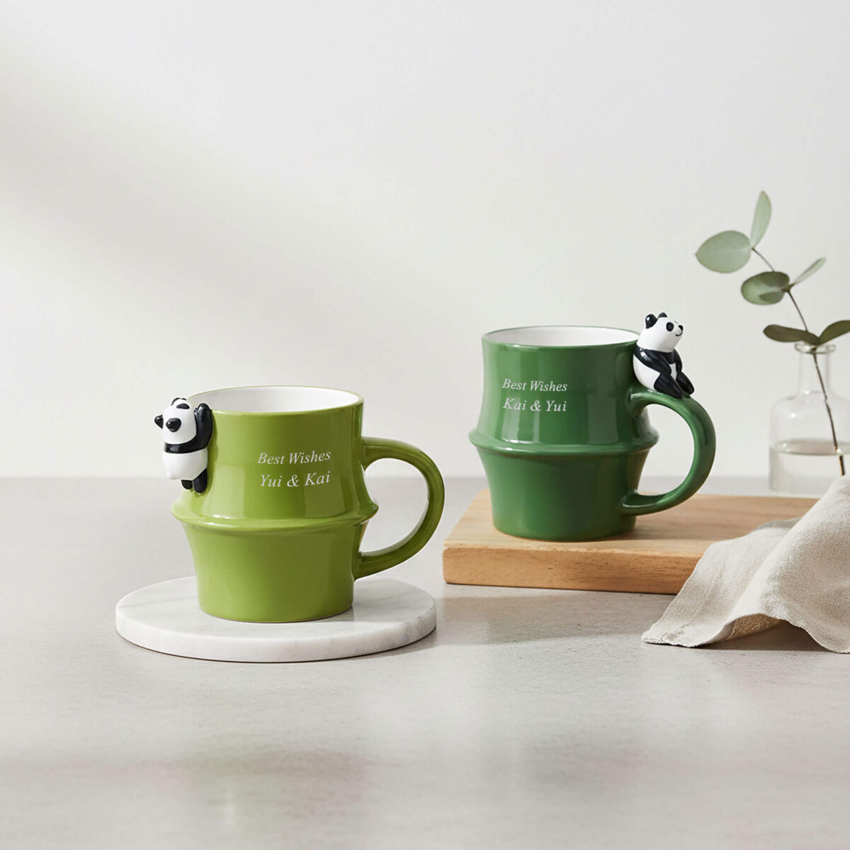 把“悠哉小熊猫”带回家!在 2-U (To You) 定制专属刻字竹节熊猫马克杯。